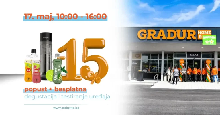 14.05.2025.Sodavita u Graduru: Popust 15%, degustacija i još jedna prilika da isprobate gaziranu vodu po svojoj mjeriSodavita je sa svojom ponudom od sada dostupna i u Gradur Home&Garden centru u Rajlovcu!…Saznaj više